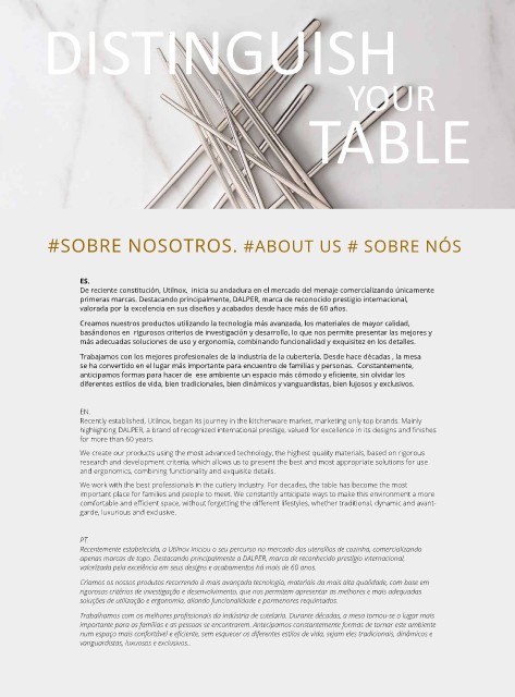 Trabalhamos com os melhores profissionais da indústria de cutelaria. Durante décadas, a mesa tornou-se o lugar mais