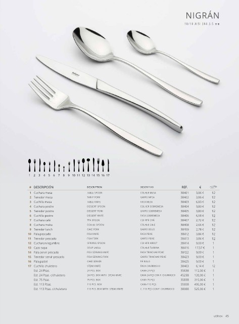 Est. 113 Pzas. c/chuletero 113 PCS. BOX WITH STEAK KNIFE C. 113 PÇS CON F. CHURRASCO 38088 525,00 € 1