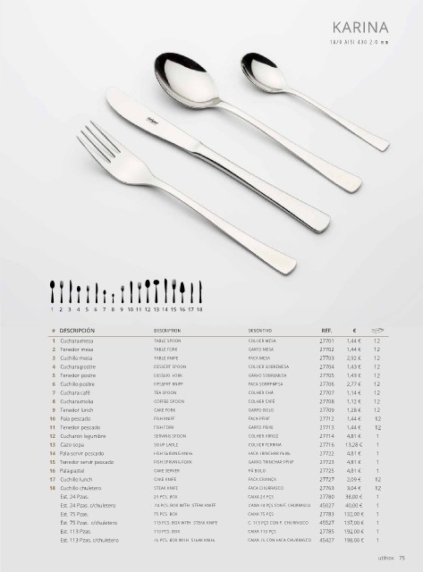Est. 75 Pzas. c/chuletero 113 PCS. BOX WITH STEAK KNIFE C. 113 PÇS CON F. CHURRASCO 45527 137,00 € 1