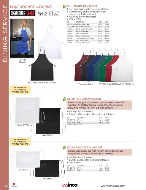 C WaIT SErvICE aPronS ♦ Pen and pad pockets on select items