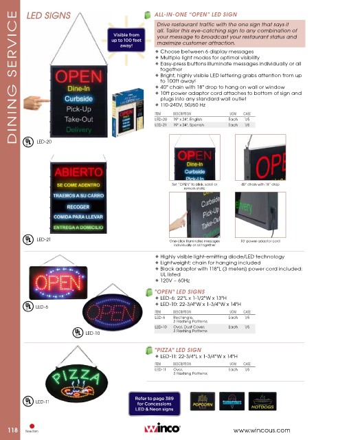 LED-21 One-click Illuminates messages 10’ power adaptor cord