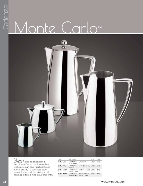 cosmopolitan dining environments. Z-MC-WP64 Monte Carlo Water Pitcher each 6/12