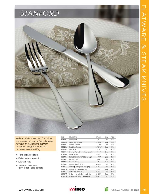 contemporary setting. 0034-05 Dinner fork 7-1/8" Doz 1/25