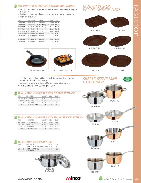 ♦ Tri-ply construction with either stainless steel or copper sINGLE-sERVE MINI