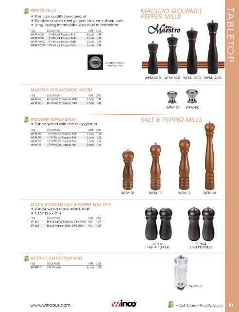 ♦ Premium quality beechwood PePPer Mills TA