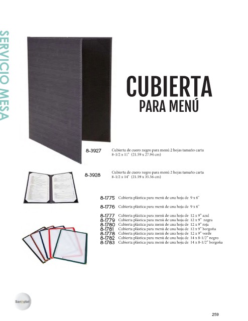 CUBIERTA PARA MENÚ 8-3927 8-3928 8-1775 8-1776 8-1777 8-1779 8-1780 8-1781 8-1778 8-1782 8-1783 259