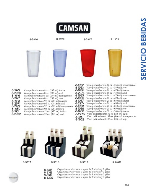 8-1945 Vaso policarbonato 8 oz (237 ml) ámbar 8-1954 Vaso policarbonato 16 oz (473 ml) ámbar